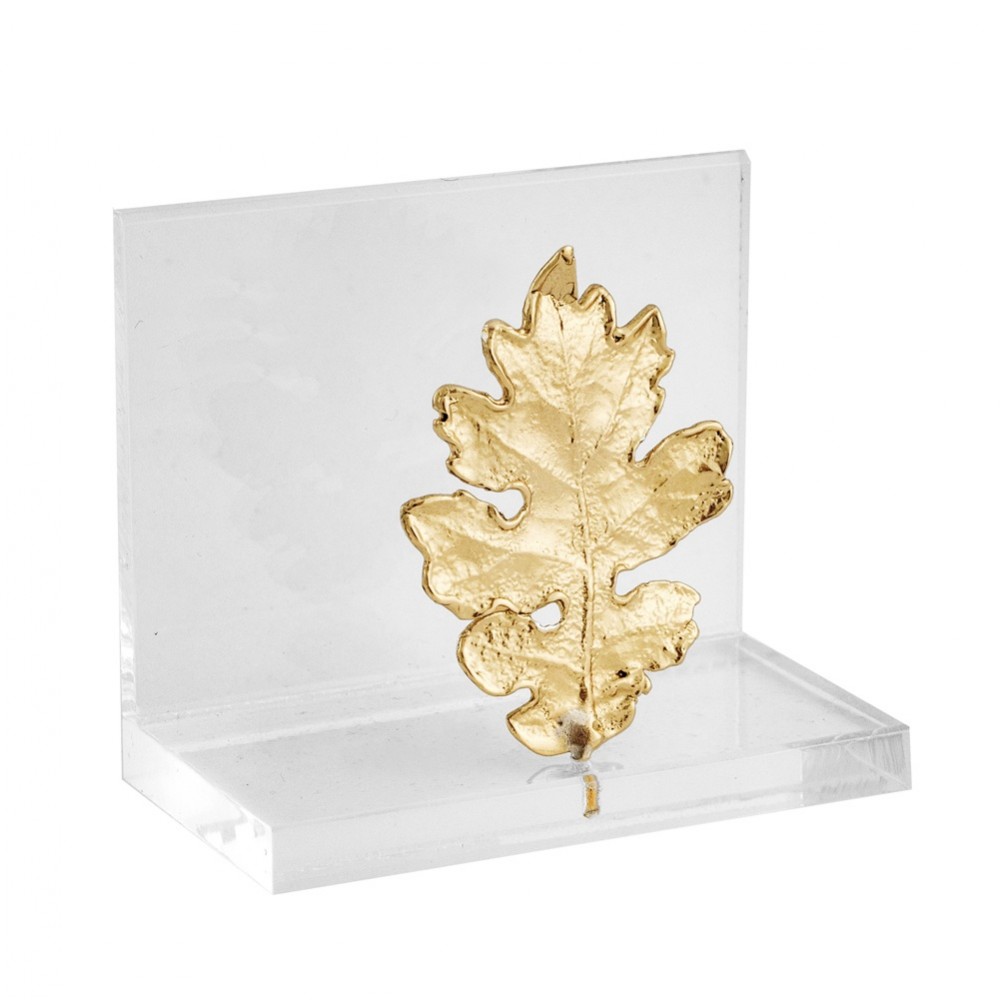 Καρτοθήκη με φύλλο βελανιδιάς από ορείχαλκο με επιχρύσωση 24Κ σε ακρυλική βάση .