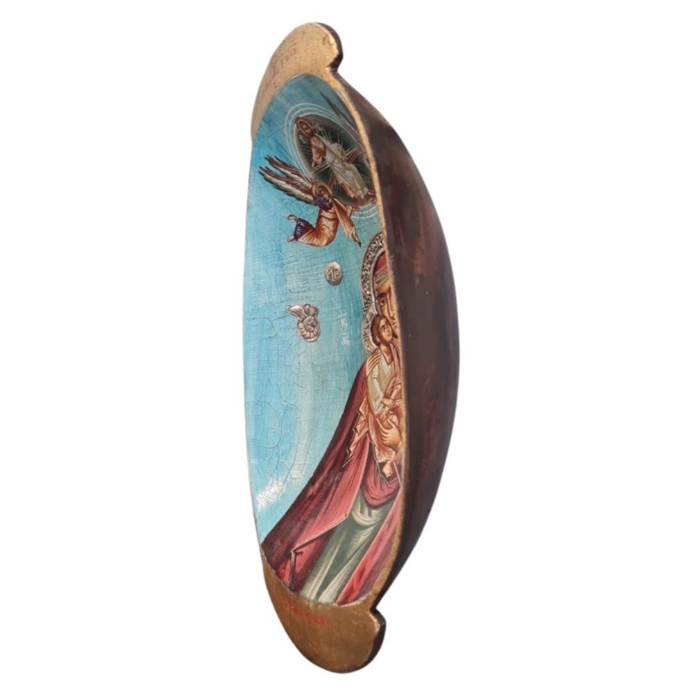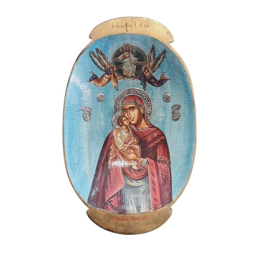 Η Παντών Χαρά & η Ανάληψη του Κυρίου . Εικόνα ζωγραφισμένη στο χέρι με την τεχνική των Βυζαντινών αγιογραφιών-αυγοτέμπερα, σε φυσικό παλαιό ξύλο και ασημένιες λεπτομέρειες 925° . Η εικόνα συνοδεύεται με πιστοποιητικό γνησιότητας που φέρει την υπογραφή του καλλιτέχνη .