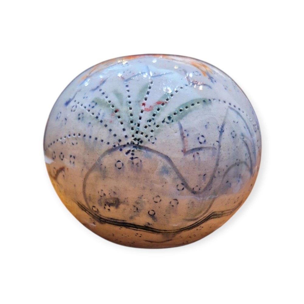 Κεραμική σφαίρα & φάλαινα από πηλό stoneware, ζωγραφισμένη στο χέρι που απεικονίζει καράβια. Ψήσιμο σε καμίνι υγραερίου 1280° C.