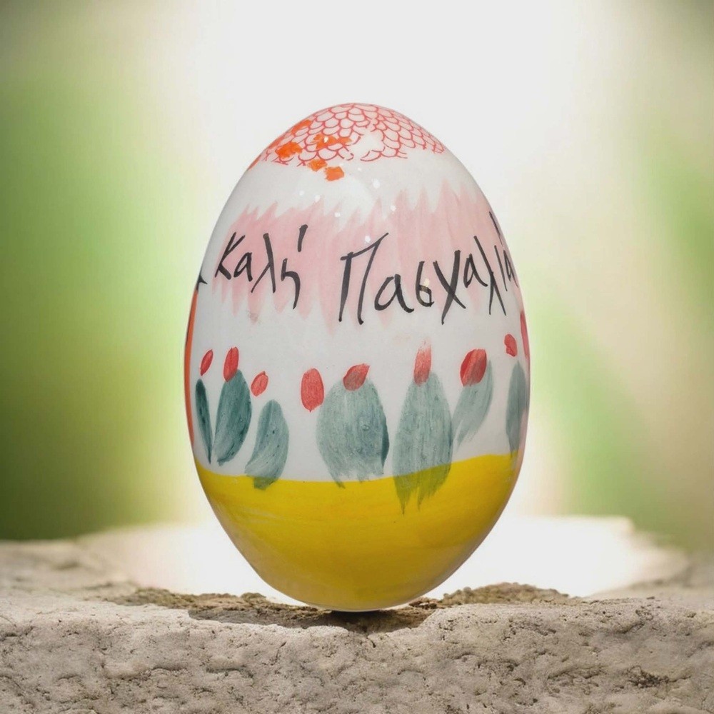 Καλή Πασχαλιά ! Μοναδικό χειροποίητο πασχαλινό αυγό από φαγιάνς και γυαλιστερό υάλωμα .Ζωγραφισμένο στο χέρι .Ψήσιμο στους 1020°C .