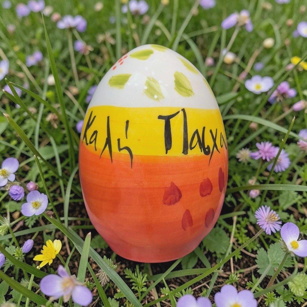 Καλή Πασχαλιά ! Μοναδικό χειροποίητο πασχαλινό αυγό από φαγιάνς και γυαλιστερό υάλωμα .Ζωγραφισμένο στο χέρι .Ψήσιμο στους 1020°C .