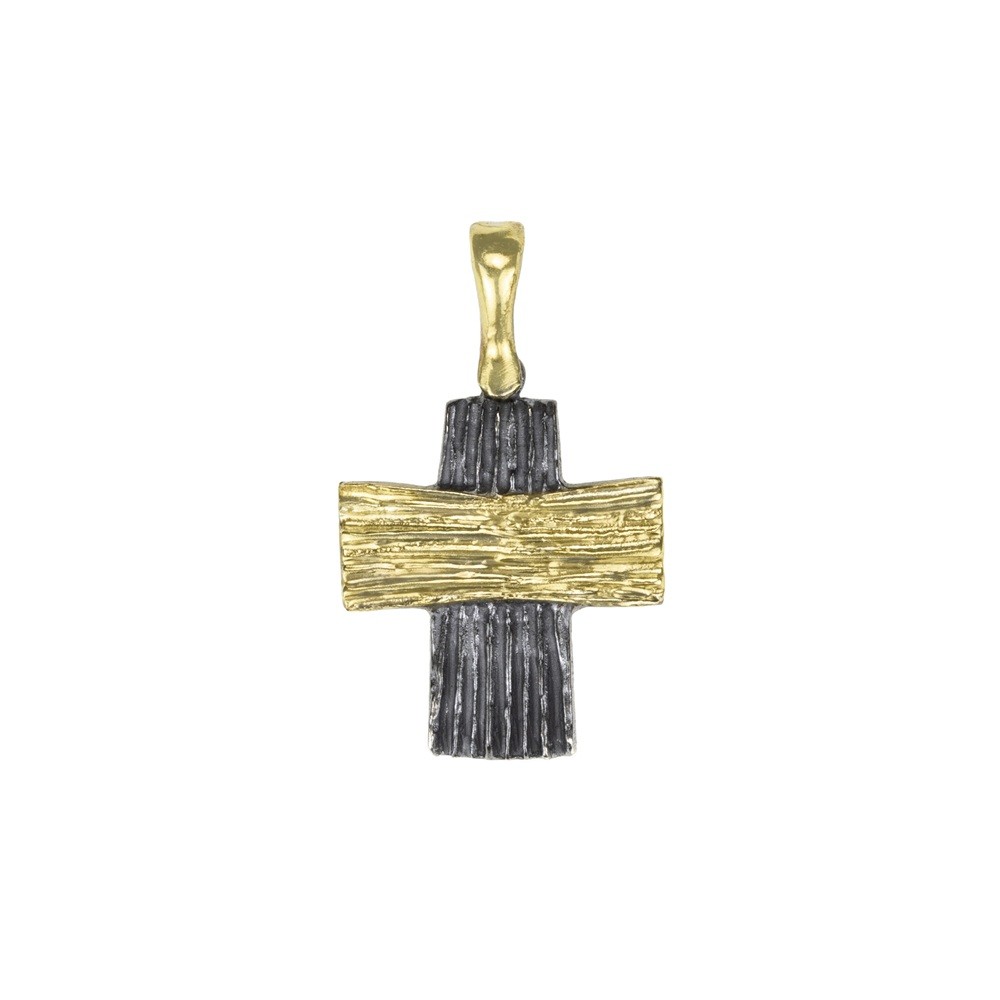 Μενταγιόν σταυρός σε χρυσό 18Κ & ασήμι 925° οξειδωμένο .