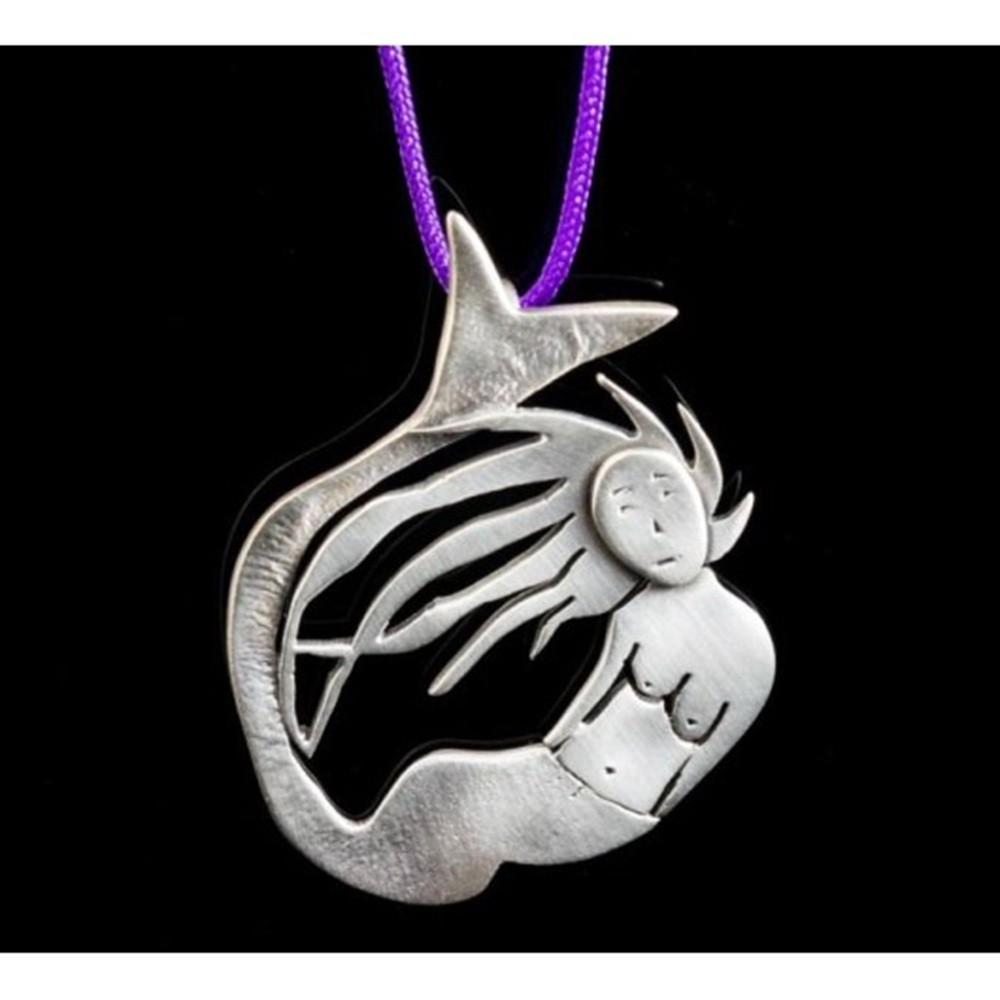 Μενταγιόν '' Γοργόνα '' από ασήμι 925 και ματ φινίρισμα . Συνοδεύεται από νήμα 44cm με χειροποίητο κούμπωμα.