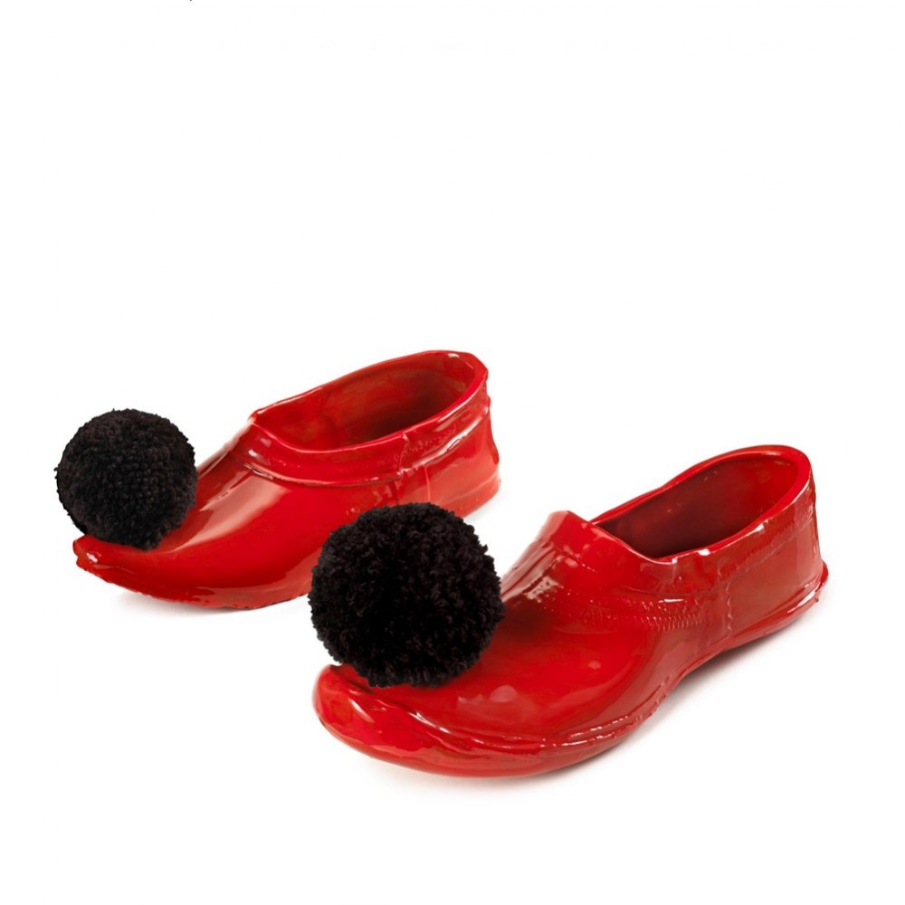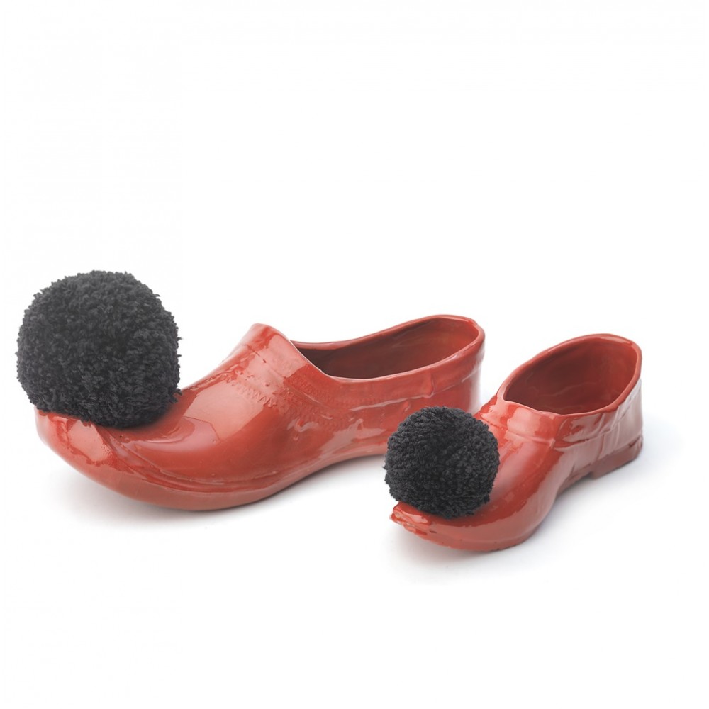 Red greek tsarouchi with black tassel in porcelain by Christina Morali .