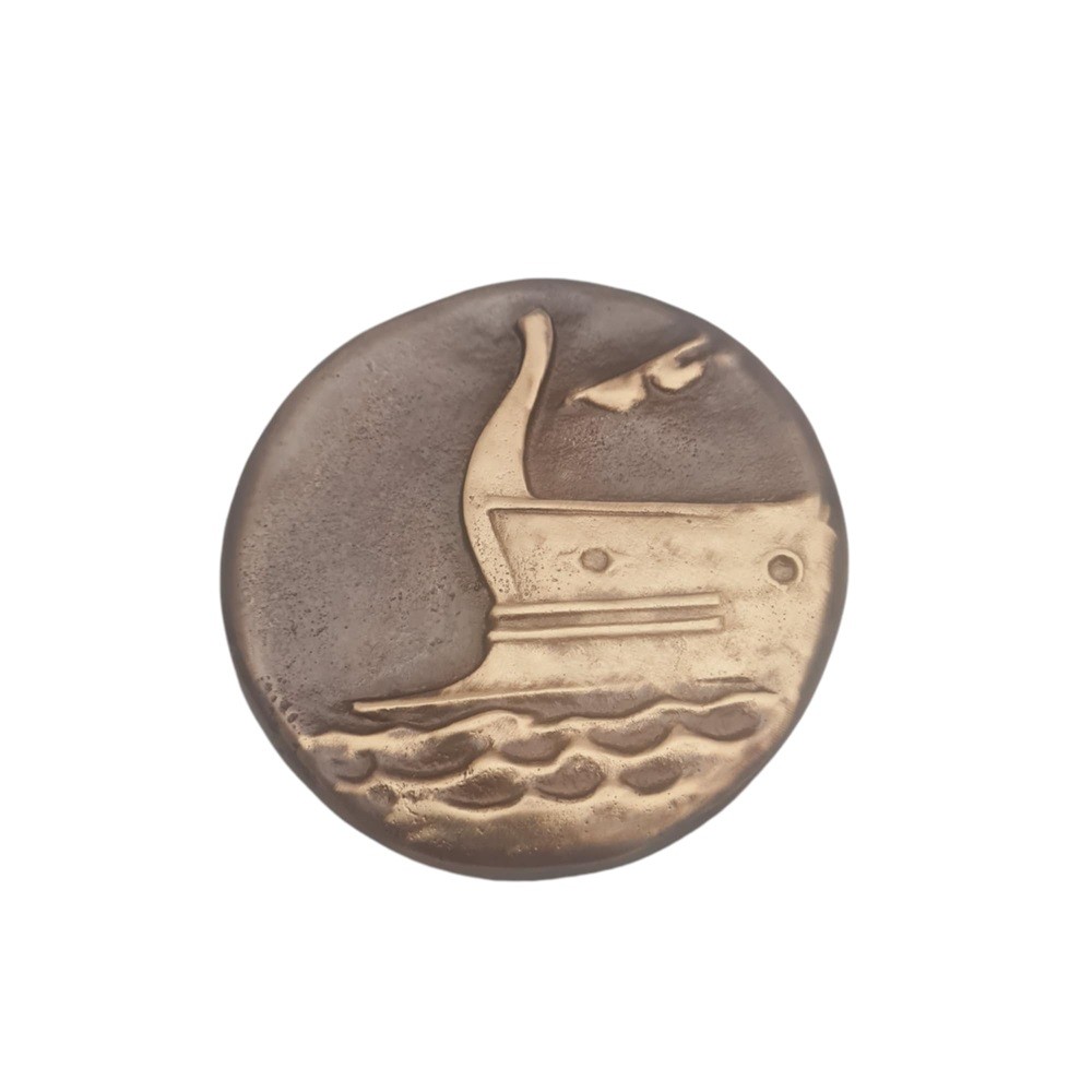 Trireme paperweight bronze & patina , detail from a rodian trireme. The design of the ship was found embossed in a rock from the ancient acropolis of Lindos in the island of Rhodes. The creator was Pythokritos, a sculptor from the Hellenistic period. It dates back to 200 B.C.
