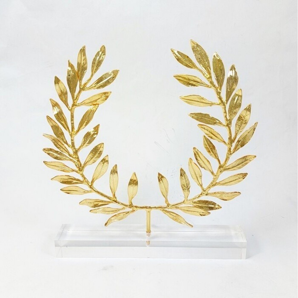 The olive tree is considered a symbol of peace , fertility , wisdom , prosperity ,victory and the Olympic ideals . The olive wreath was the prize for the winner at the ancient Olympic Games it was an olive branch , in the form of a circle . The sculpture is handmade of solid brass, plated in gold solution 24 carats and mounted on an acrylic base (plexiglass).