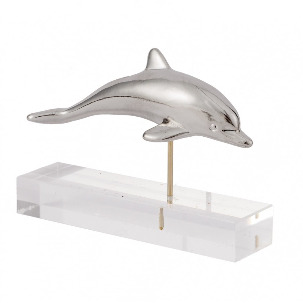 Sculpture dolphin silver plated on an acrylic base .