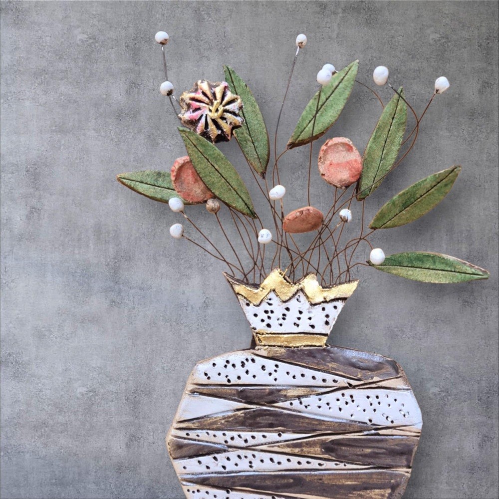 Unique pomegrane on ceramic base of stoneware clay.Empossed pomegranate with ceramic stains and coloured slips.