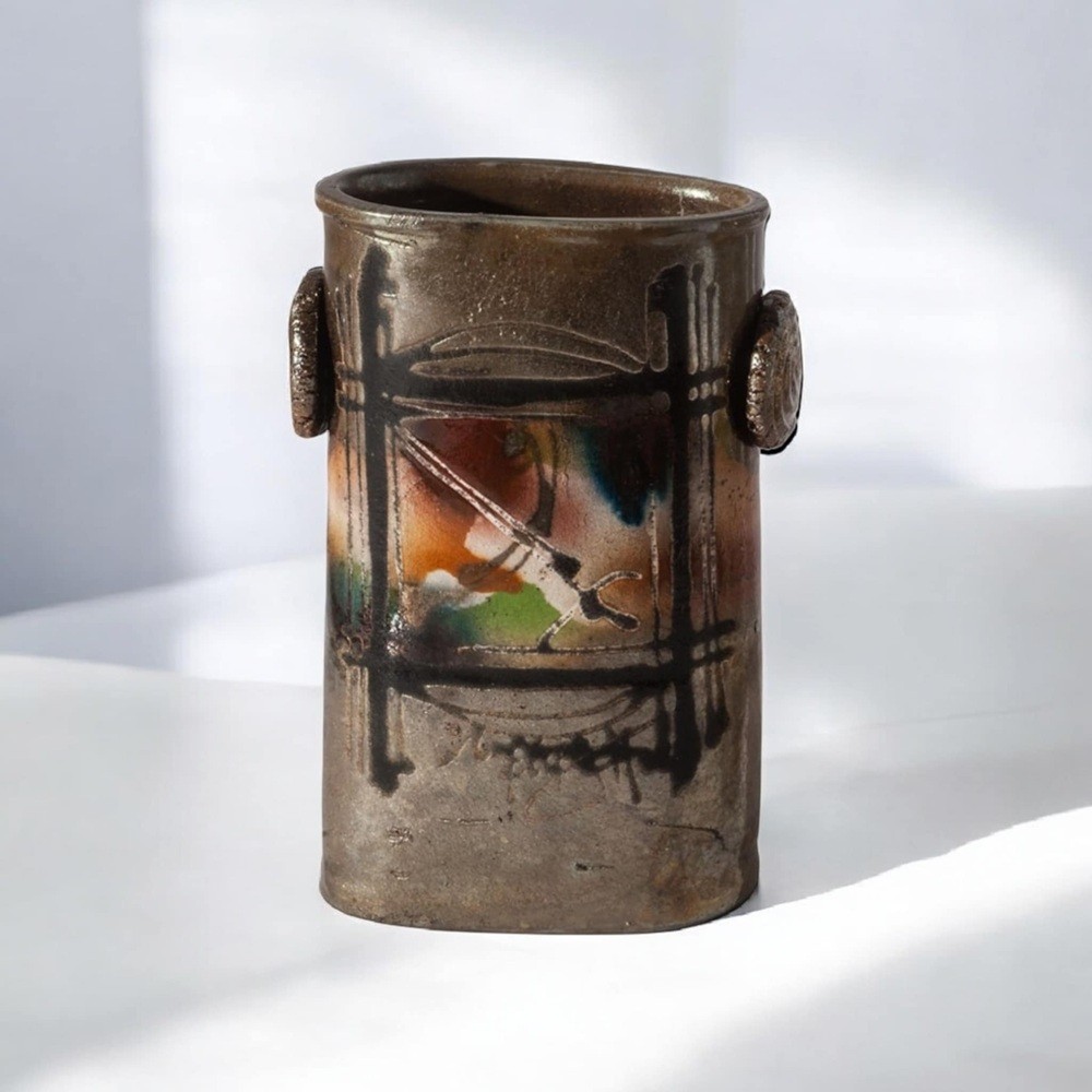 Stoneware vase .Raku - Technique in an open fire kiln.