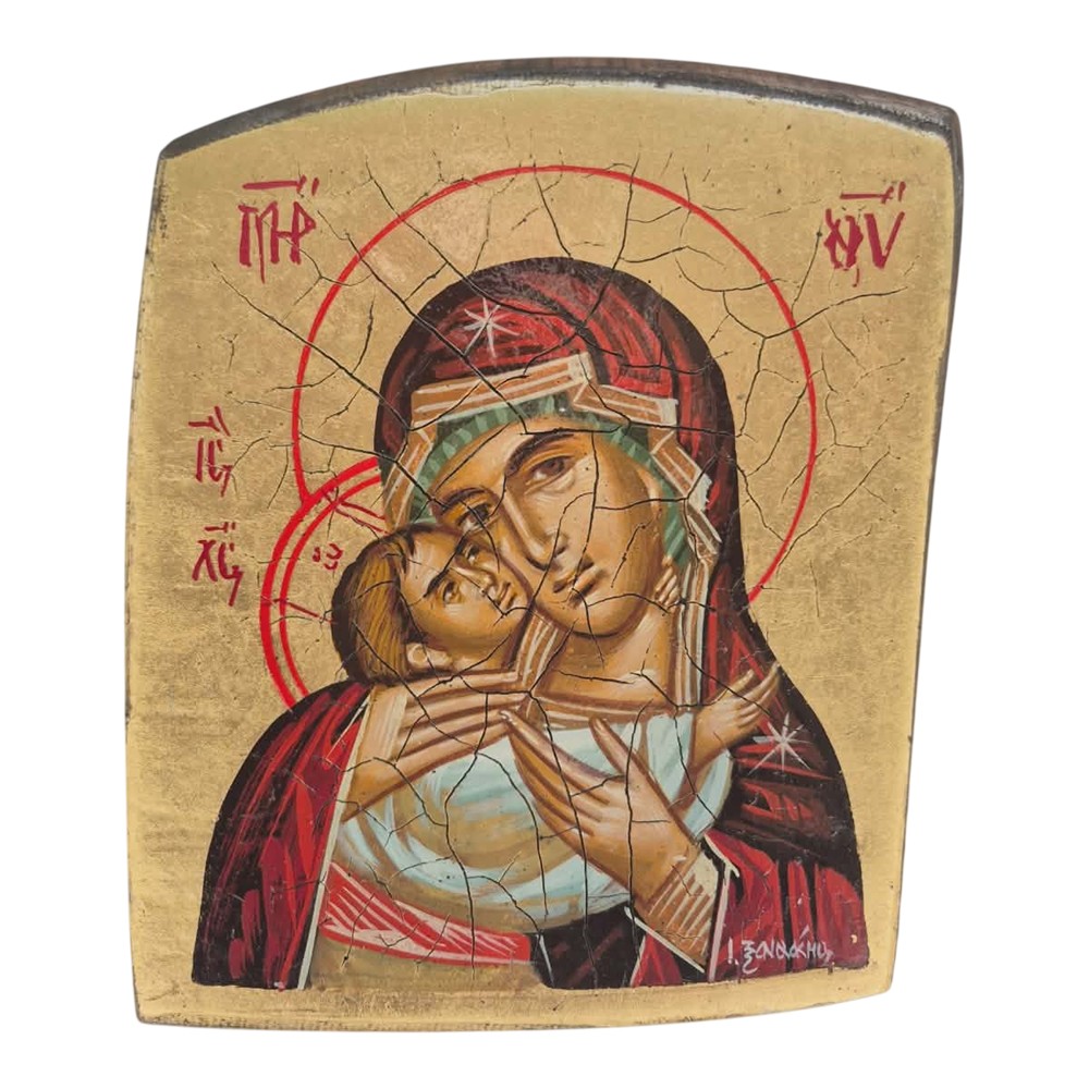 Wallpiece Jesus Christ & Virgin Mary . Byzantine technique egg tempera on natural aged wood .Every icon comes with certificate of authenticity signed by the artist .